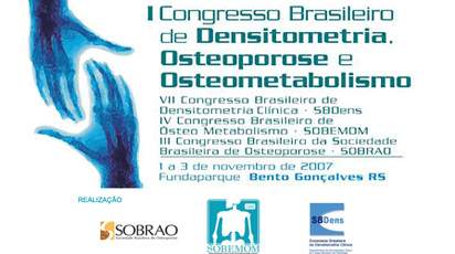 Pela primeira vez a Sociedade Brasileira de Densitometria Clinica, Sociedade Brasileira de Metabolismo Ósseo e Mineral e a Sociedade Brasileira de Osteoporose estão promovendo um Congresso conjunto, como o firme propósito de unir esforços para melhor estudar a osteoporose no Brasil, trazer os conhecimentos mais atualizados e mostrar o que tem sido feito no diagnóstico e tratamento desta patologia em nosso paÃs.