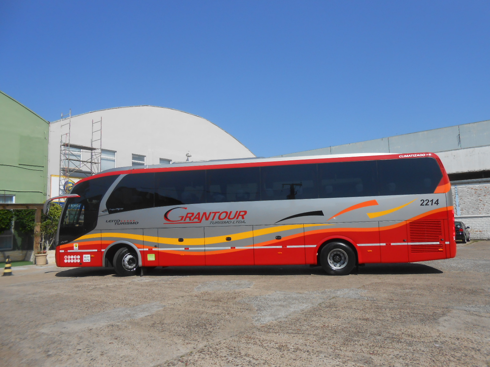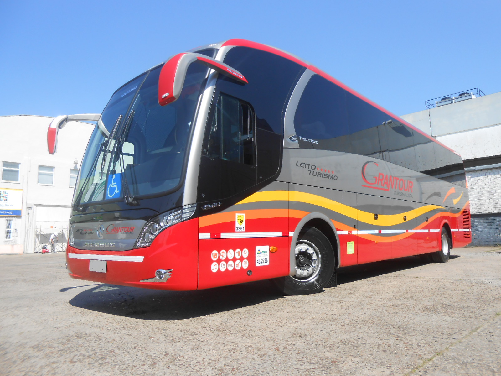 - Neobus N10 380 - Paradiso - Capacidade: 42 lugares – Leito Turismo - Banheiro com mictório e Porta Pacotes com cromoterapia de luzes coloridas em LED; Porta divisória do salão em curva panorâmica; - Frigobar Elétrico e duas Cafeteiras; - Porta copos, Luzes de Leitura em LED e Regulagem de Som, individualizados nas poltronas, Mesa de Jogos (opcional); - Microfone, 4 Monitores LCD 21 e 14 polegadas, DVD c/ MP3 e USB, DTV Digital, CD, GPS, tomadas para Notebook e Celulares 110v; - Ar Condicionado Digital quente e frio 135.000 Btus; - Calefação com Sensores Automáticos, inclusive de fumaça; - Vidros colados fumê com cortinas e teto solar envidraçado; - Poltronas Reclináveis em 4 estágios super soft com descansa permas e pés anatômicos; - Suspensão a ar e iluminação geral em LED; |