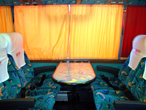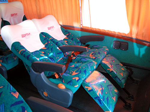 - Marcopolo Paradiso Geração 6 - Capacidade: 38 lugares – Leito - Banheiro e Porta Pacotes; - Frigobar Elétrico, Suqueira, Cafeteira; - Porta copos, Luzes de Leitura Individuais, Mesa de Jogos (opcional); - Microfone, Monitor, DVD auto play c/ MP3, CD; - Ar Condicionado digital 135.000 Btus; - Calefação com sensores automáticos; - Vidros colados fumê com cortinas; - Poltronas Reclináveis em 4 estágios super soft com descansa permas e pés; - Suspensão a ar; |