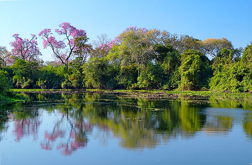Maior planÃcie inundável do planeta, o Pantanal é uma extraordinária reserva da vida selvagem. As aves voam aos bandos, os peixes são abundantes e há uma profusão de espécies como jacarés, cervos, tamanduás e até ariscas onças-pintadas. Tudo ao alcance da vista. Considerada a maior área úmida do planeta, a variedade de bichos espanta. O pantanal é bem estruturado na rede de hotéis e pousadas, onde ficam distribuÃdas no entorno do Pantanal.